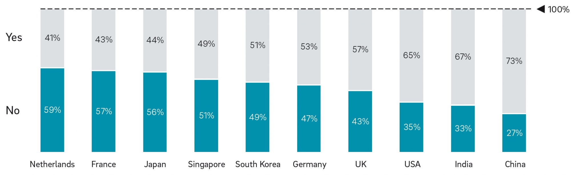 Grafik: „Würden Sie auch ein Auto kaufen, wenn ein vollautomatisiertes Robotertaxi zu geringeren Kosten pro Reise im Vergleich zum eigenen Auto verfügbar wäre?“
