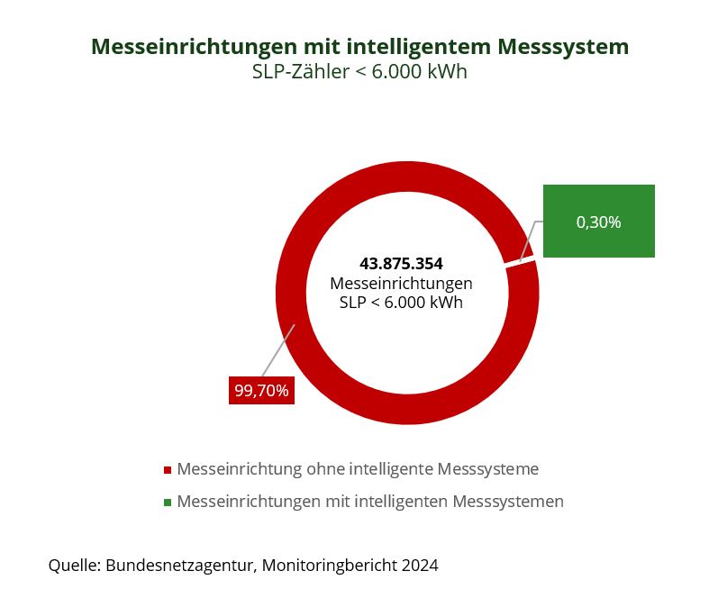 Vergangenes Jahr waren lediglich ca. 0,3 % oder in etwa 130.000 Messlokationen im SLP-Bereich unter 6.000 kWh mit intelligenten Messsystemen ausgestattet.