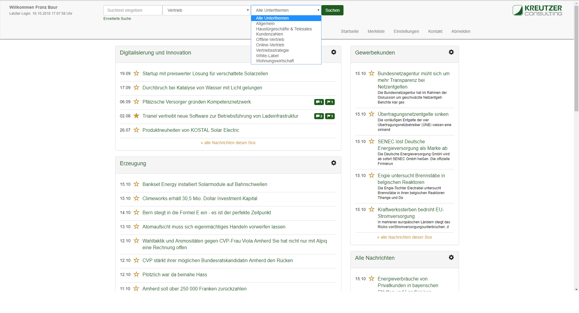 Die Informationsbereitstellung selbst kann der Kunde frei konfigurieren. Personalisierbare Content-Boxen auf der Startseite formieren ein übersichtliches Dashboard für einen schnellen Überblick. Intelligente Suchfunktionen, ein Archiv oder eine persönliche Merkliste sorgen dafür, dass Informationen schnell und dauerhaft auffindbar sind. Die Grundlage dafür bildet eine präzise Kategorisierung und Verschlagwortung der Meldungen. Community-, Export- und Mailing-Funktionen helfen dem Team, Informationen effektiv weiterverarbeiten und den maximalen Nutzen aus ihnen zu ziehen zu können. Nutzungsstatistiken zeigen zudem an, welche Themen für die Kollegen besonders interessant sind. Falls gewünscht, können auch unternehmenseigene Informationskanäle per Import-Schnittstelle integriert werden.