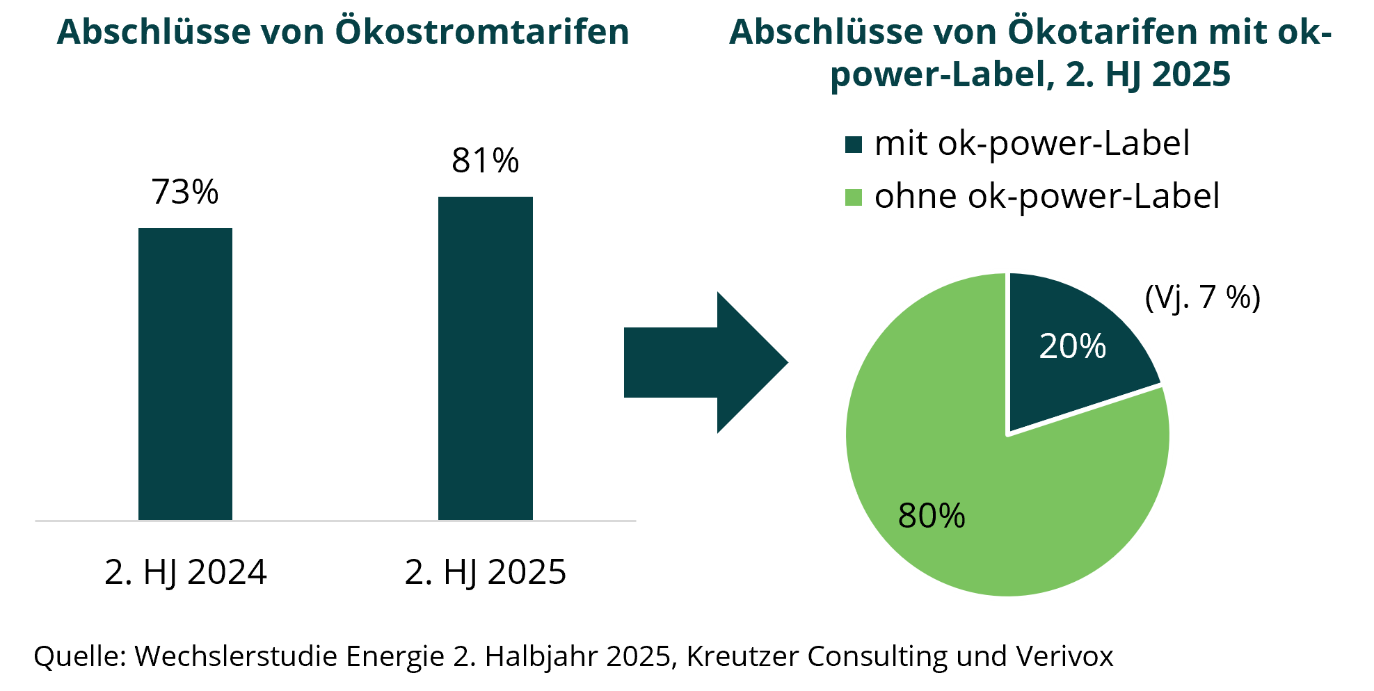 Die Nachfrage nach nachhaltigen Energietarifen bleibt hoch und entwickelt sich weiter: Im zweiten Halbjahr 2025 haben sich über 80 % der Stromwechsler für einen Ökostromtarif entschieden. Gleichzeitig zeigt die aktuelle Wechslerstudie Energie von Kreutzer Consulting in Kooperation mit Verivox, dass Qualitätskriterien wie das ok-power-Label bei der Tarifwahl zunehmend an Bedeutung gewinnen. Es gibt aber regionale Unterschiede.